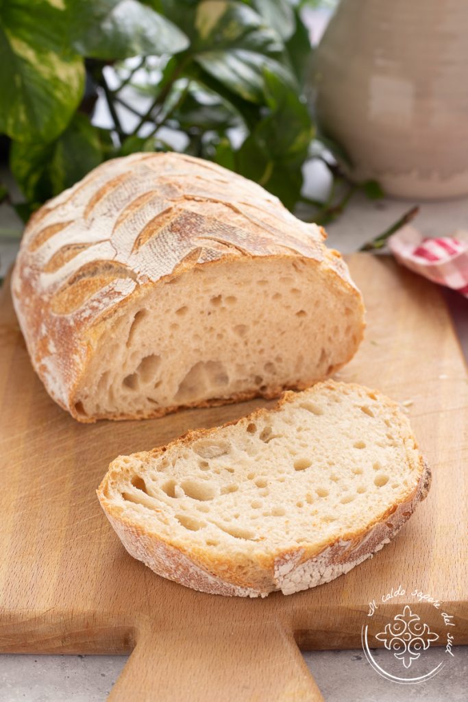 Notre délicieux pain est prêt. En hiver, il suffit de le garder enveloppé dans un torchon en coton et il se conservera très bien pendant deux ou trois jours ; en été, malheureusement, il a tendance à sécher plus vite. Je ne recommande pas de le conserver dans des sacs plastiques, il s’abîmerait : mieux vaut le portionner et le congeler pour l’utiliser au besoin.