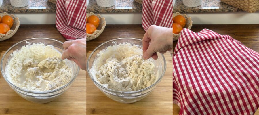 • Pétrissez la pâte quelques secondes et couvrez-la d’un torchon, puis laissez reposer 10 minutes.
