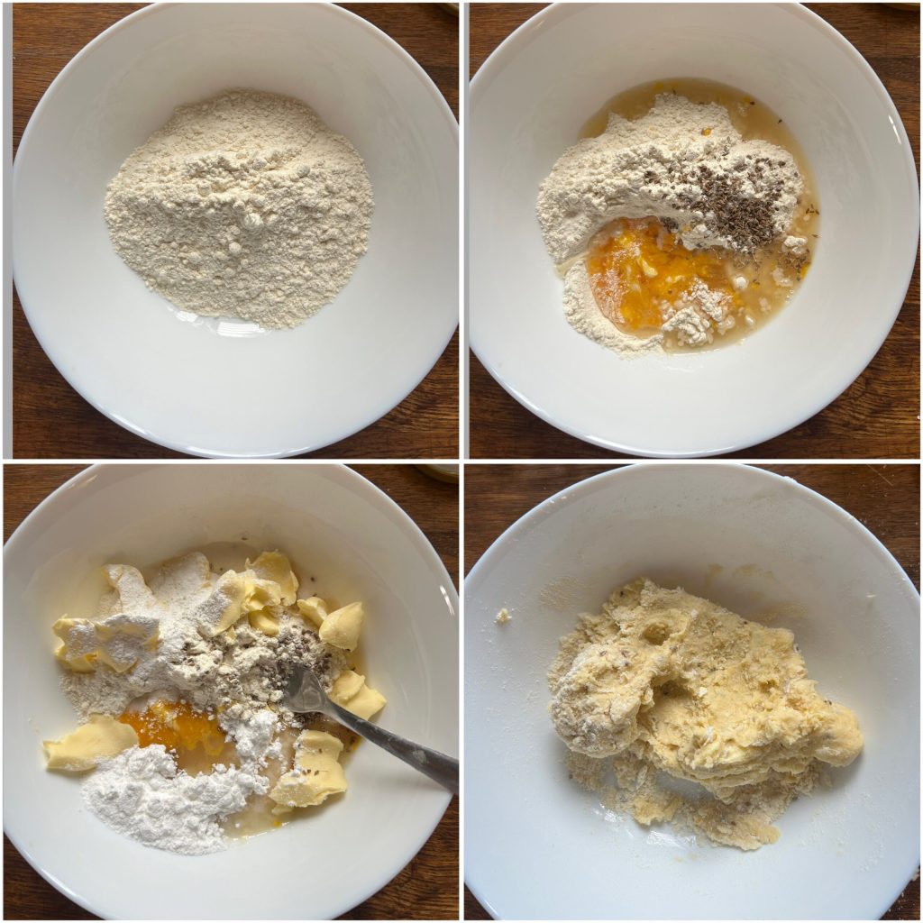 Préparez tous les ingrédients, faites griller les pignons dans une petite casserole et passez à la pâte. Mettez dans un bol la farine, le sucre, l’œuf, les graines de fenouil, le marsala, la levure et le beurre, travaillez grossièrement puis versez le tout sur le plan de travail.