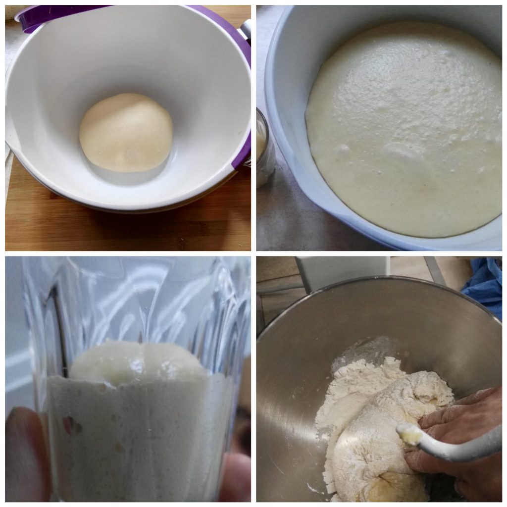 Il faudra au moins quinze minutes avant que la pâte soit prête. Quand la masse sera soyeuse, élastique et homogène, c’est-à-dire bien liée au crochet (incordata), vous pourrez procéder aux insertions suivantes. Ajoutez alors le levain, qui doit avoir été rafraîchi au moins trois fois consécutives et être bien mûr.