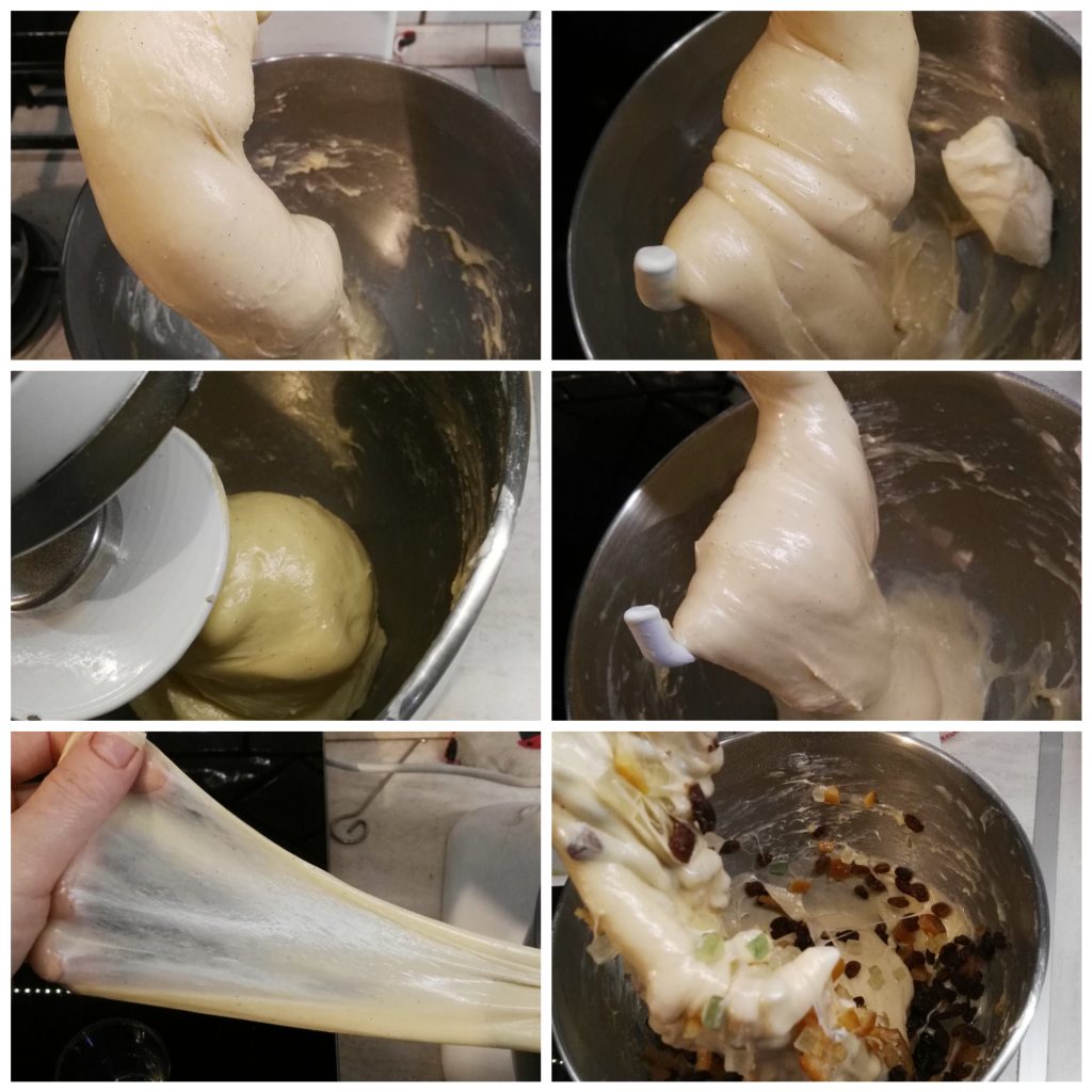 • Lorsque la pâte restera accrochée au crochet du robot en laissant le bol propre et qu’elle paraîtra brillante (mais pas trop, car cela signifierait qu’elle a été trop travaillée), le premier pétrissage sera terminé.