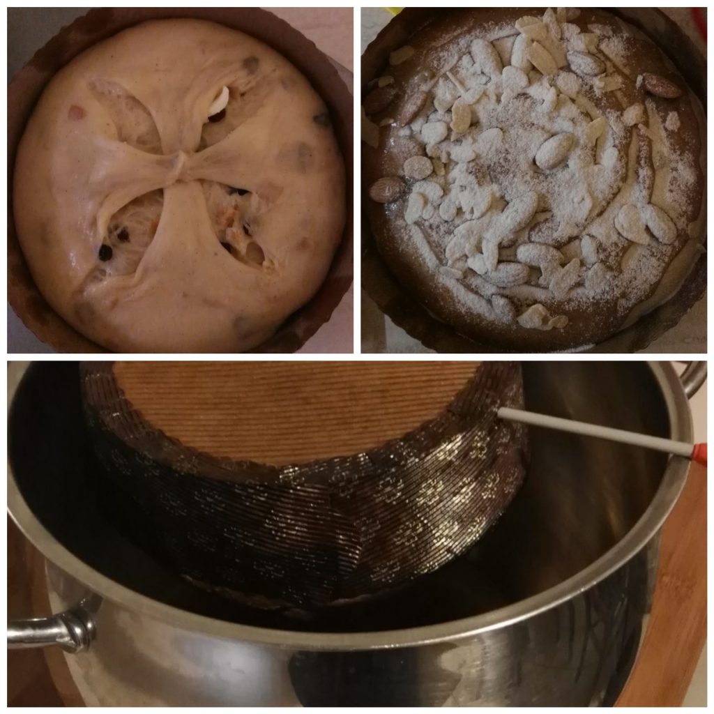 • Après 6/8 heures à 26°/28°C la pâte devrait être levée ; quand le panettone sera arrivé à 1 cm du bord ou un peu moins, vous pourrez enfourner : préchauffez donc le four à 170°C. Maintenant vous pouvez décider de glacer ou non le panettone.