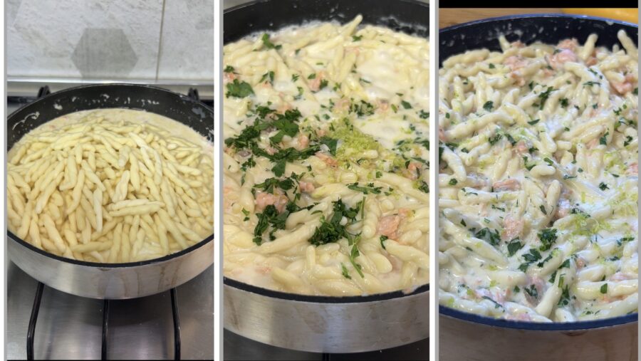 Préparation des pâtes saumon fumé, crème et citron