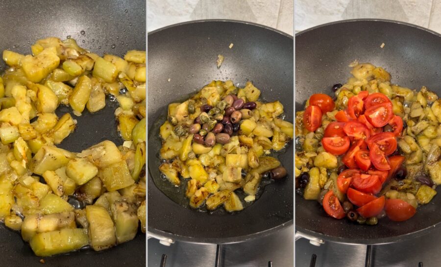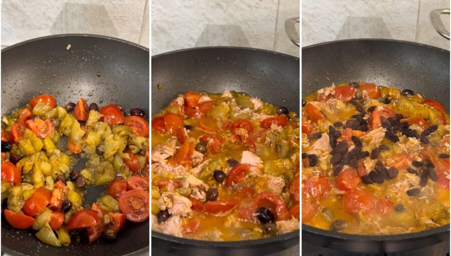 Étapes pour préparer les Pâtes au thon et aux aubergines à la sicilienne
