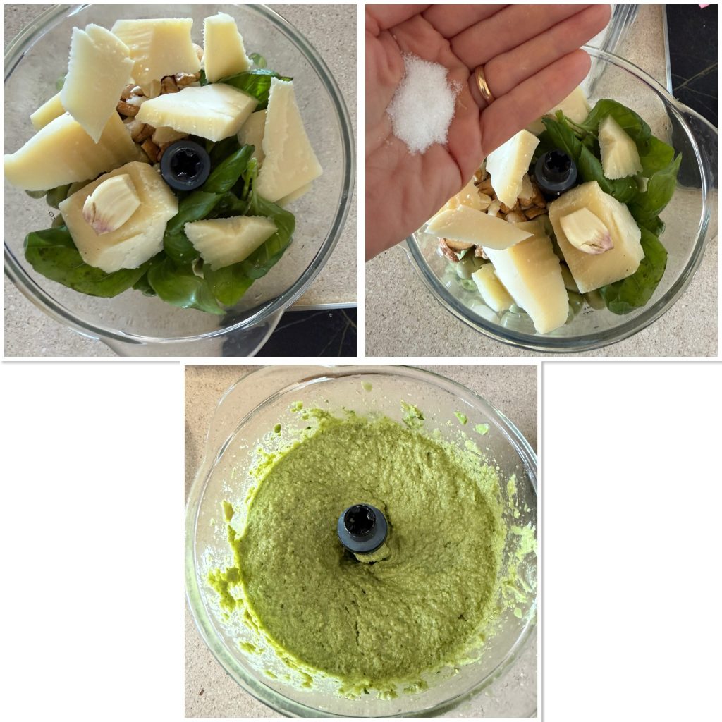 Mixez jusqu’à obtenir un pesto crémeux et homogène, pas trop dense.