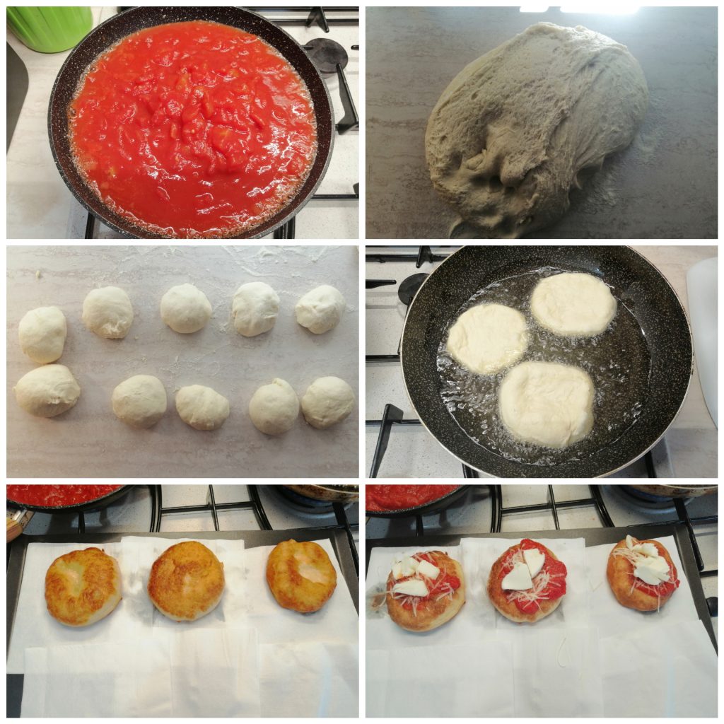 On raconte qu’elles étaient vendues par les épouses des pizzaioli napolitains aux montagnards qui descendaient en ville : ils cherchaient quelque chose de bon marché et prêt tout de suite, et ces petites fritures faites avec les restes de pâte, agrémentées d’un peu de sauce tomate et d’un peu de fromage, sont devenues au fil du temps un street food typique, connu et adoré.