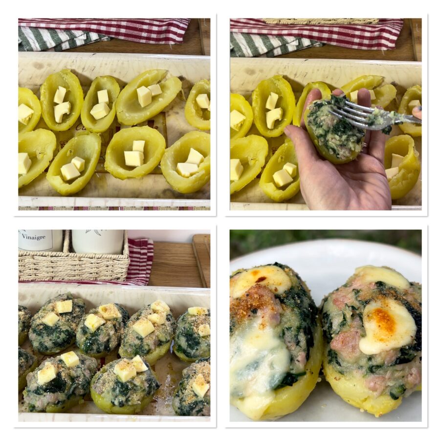 Étapes pour préparer les Pommes de terre farcies à la saucisse et aux épinards