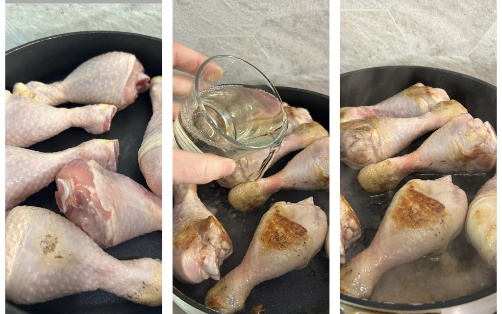 Pour préparer le poulet aux champignons à la poêle, vous pouvez choisir n’importe quelle partie du poulet. Le blanc coupé en morceaux sera plus sec, tandis que les cuisses, les pilons et les ailes seront parfaits. Pour ma part, j’ai choisi les pilons, c’est-à-dire les cuisses.