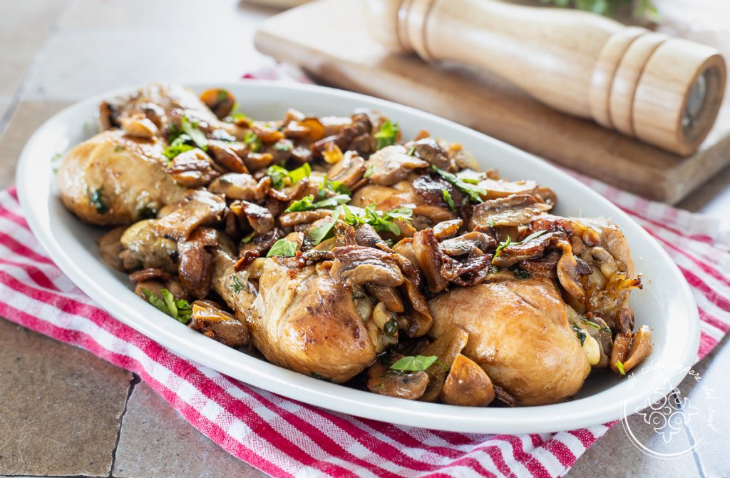 Poulet aux champignons à la poêle, recette avec des champignons de Paris ou autres. Les pilons de poulet à la poêle avec les champignons, tout comme les escalopes de poulet crémeuses aux champignons, sont un plat principal de poulet économique et savoureux qui vous aidera à mettre sur la table un plat gustatif et chaleureux, avec un accompagnement gourmand, sans trop vous fatiguer ! C’est une recette super facile, avec peu d’ingrédients, mais un résultat garanti et je suis sûre que vos proches vont vous faire des compliments ! Donc si vous cherchez de nouvelles idées pour apprécier les champignons, ou si vous ne savez pas comment cuisiner le poulet, cette recette est parfaite pour faire plaisir à tout le monde. Allons en cuisine alors, découvrons comment préparer des cuisses de poulet aux champignons faciles et rapides et vous verrez quelle merveilleuse sauce vous ferez ! Avant de nous retrousser les manches, je vous rappelle que si vous voulez rester informés de toutes mes autres recettes, vous pouvez suivre ma page Facebook et mon profil Instagram.