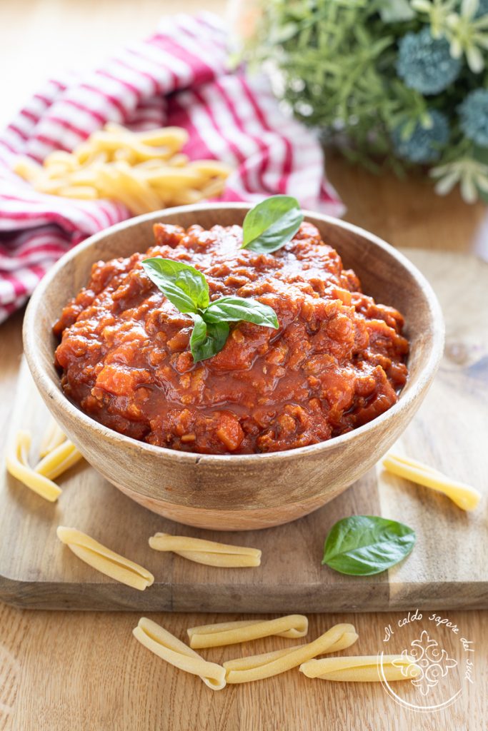 Évidemment, l’Italie est grande, chaque région et chaque famille a sa propre recette personnelle de ragù, peut‑être héritée de la mère, de la grand‑mère ou de la tante, mais les ingrédients de base restent toujours les mêmes : viande hachée, mirepoix de carottes, céleri et oignon et passata de tomates.