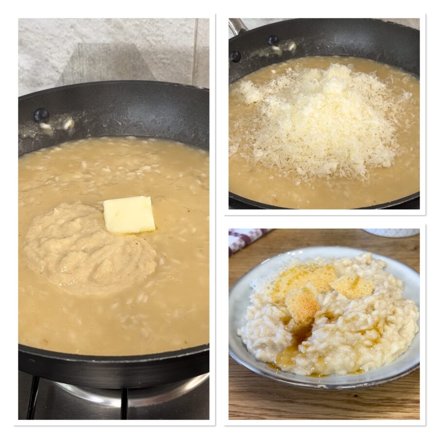 Étapes pour préparer le risotto aux oignons, pecorino et miel
