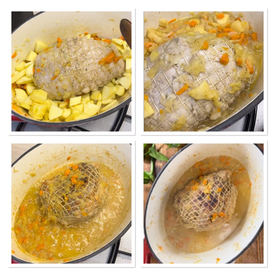Longe de porc rôtie aux pommes, un rôti de longe de porc en cocotte, simple et savoureux. La viande de porc est goûteuse, très polyvalente et même un morceau économique et facile à cuisiner : elle peut devenir un plat principal original pour Noël ou pour les fêtes. Pour valoriser une pièce comme la longe et la transformer en un rôti simple, mais à la fois unique et savoureux, il suffit de quelques précautions et des bons ingrédients, et le résultat sera si bon que vous changerez d’avis sur ses possibilités. J’adore cuisiner la longe de porc et souvent je l’associe aux fruits, comme lorsque je prépare le rôti de porc aux pommes ou le rôti de porc aux pommes ou le rôti de porc à l’orange.