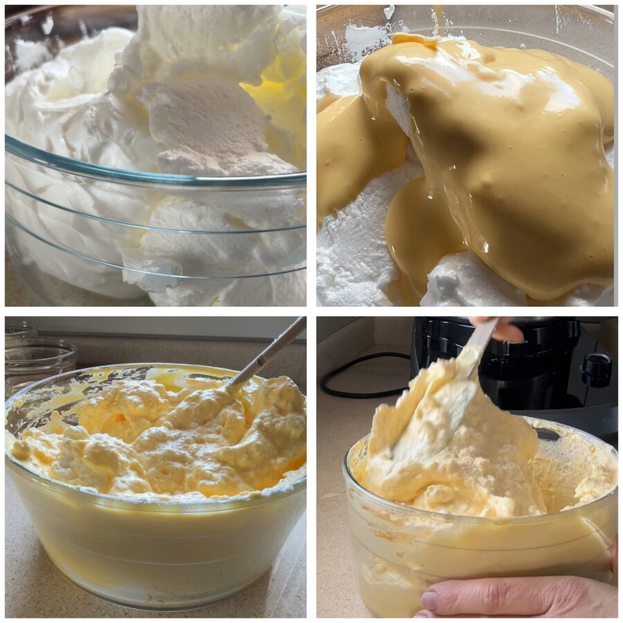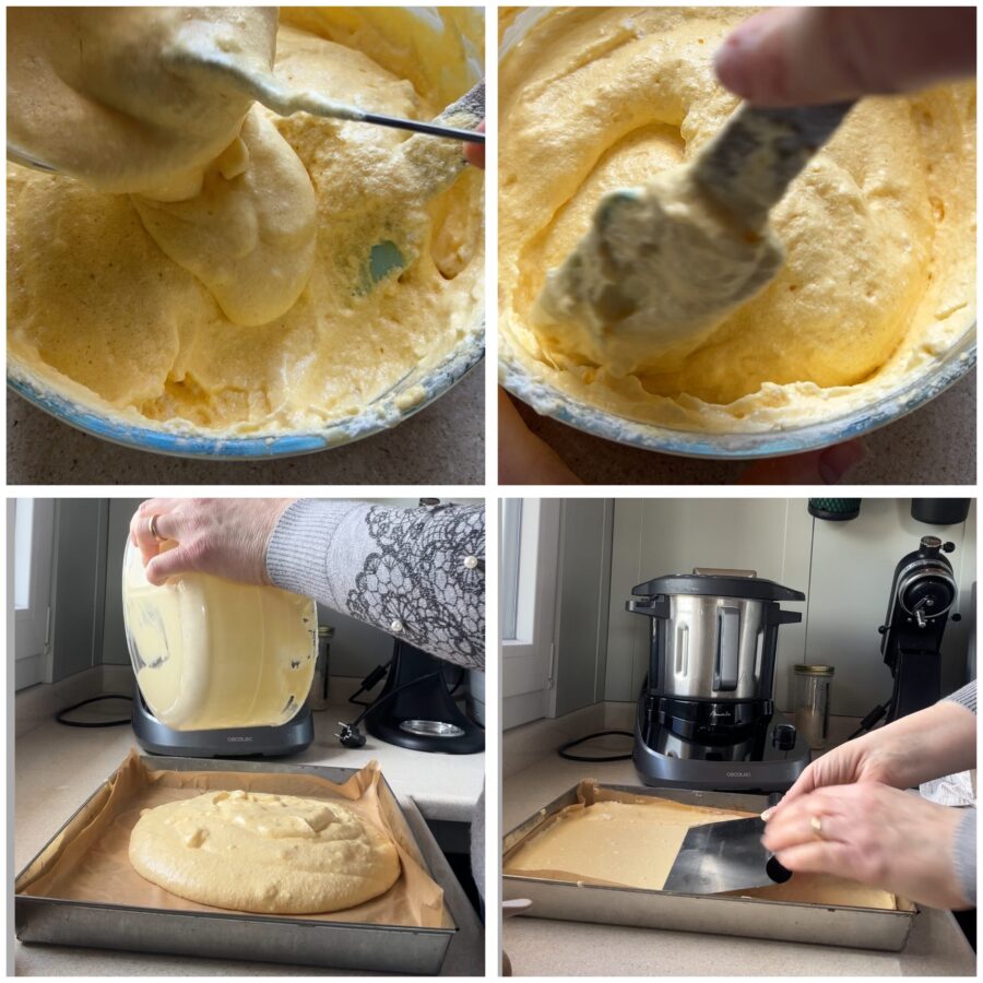Mélangez avec des mouvements lents du bas vers le haut, jusqu’à ce que la préparation soit crémeuse, légère et sans grumeaux.