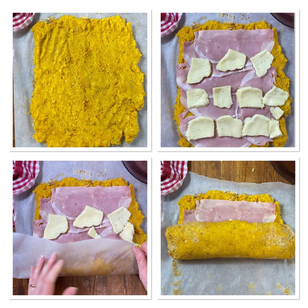 Roulé de courge et pommes de terre au jambon et fromage : préparation…