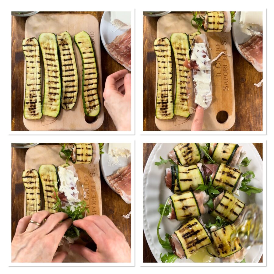 Roulés de courgettes grillées farcis et servis froids, une entrée simple, gourmande et originale, parfaite en toute saison, du Noël à Ferragosto !