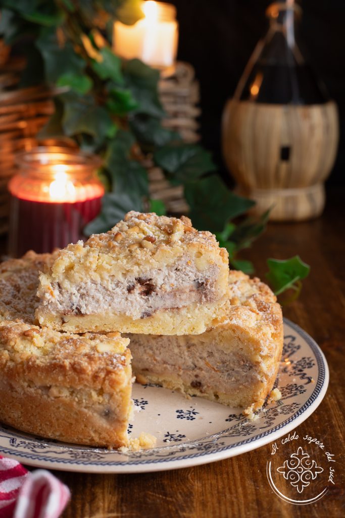 Sbriciolata à la ricotta et chocolat, la recette de mamie pour une sbriciolata ultra parfumée avec une garniture crémeuse et moelleuse, un dessert parfait quand les premiers froids arrivent et qui nous tient compagnie jusqu’au printemps. Sentir le parfum de la ricotta, de la cannelle, du zeste d’orange, mélangé à l’arôme inimitable de la pâte sablée au beurre, me ramène à l’enfance, aux gâteaux que je préparais avec ma mamie et ma tante, ma grand-mère était la magicienne des sbriciolate ! Mamie trouvait la sbriciolata une tarte super facile ! En fait, la base de la sbriciolata se prépare en un rien de temps, en 5 minutes et sans laisser reposer la pâte au frigo, les grosses miettes de pâte sablée et la garniture crémeuse créent ensuite un duo de textures vraiment fabuleux !! Dans cette recette, en pensant justement à ma mamie qui était Trentine et en réunissant ma nature sicilienne, j’ai marié la cuisine du nord et la tradition du sud et j’ai réalisé la sbriciolata avec la même garniture que les cannoli à la ricotta : une délicatesse unique ! Maintenant, il est temps d’aller en cuisine et de découvrir comment faire la sbriciolata à la ricotta avec des pépites de chocolat, mais avant de retrousser nos manches je vous rappelle que si vous voulez rester à jour sur toutes mes recettes vous pouvez suivre ma page Facebook (ici) et mon profil Instagram (ici).
