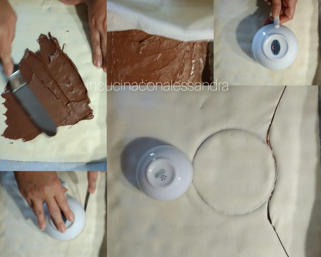 Étalez la pâte feuilletée avec son papier sulfurisé directement dans le moule, étalez la Nutella sur toute la pâte, recouvrez avec l’autre pâte. Avec une grande tasse, donnez la forme du corps en appuyant un peu sur la pâte, puis avec une petite tasse, faites de même pour créer la tête. Avec un couteau, coupez la pâte pour créer 8 pattes et 2 antennes au-dessus de la tête. Aidez-vous du couteau pour enlever l’excédent de pâte, prenez 2 petits morceaux et formez 2 boules pour créer les yeux de l’araignée. Prenez chaque patte en la tournant sur elle-même, positionnez 2 pattes devant à côté de la tête, laissez 2 pattes sur les côtés et les autres 2 vers l’arrière. Avec le papier sulfurisé, créez 8 boules, dont 2 plus grandes, et placez-les sous les pattes, les plus grandes sous les pattes avant, créant ainsi la pliure. Brossez avec un peu de lait et enfournez dans le four chaud et faites cuire à 180° pendant environ 15 minutes ou jusqu’à la dorure désirée. Ne jetez pas l’excédent de pâte, faites-le cuire séparément. Servez en décorant avec des toiles d’araignée et des araignées d’Halloween.