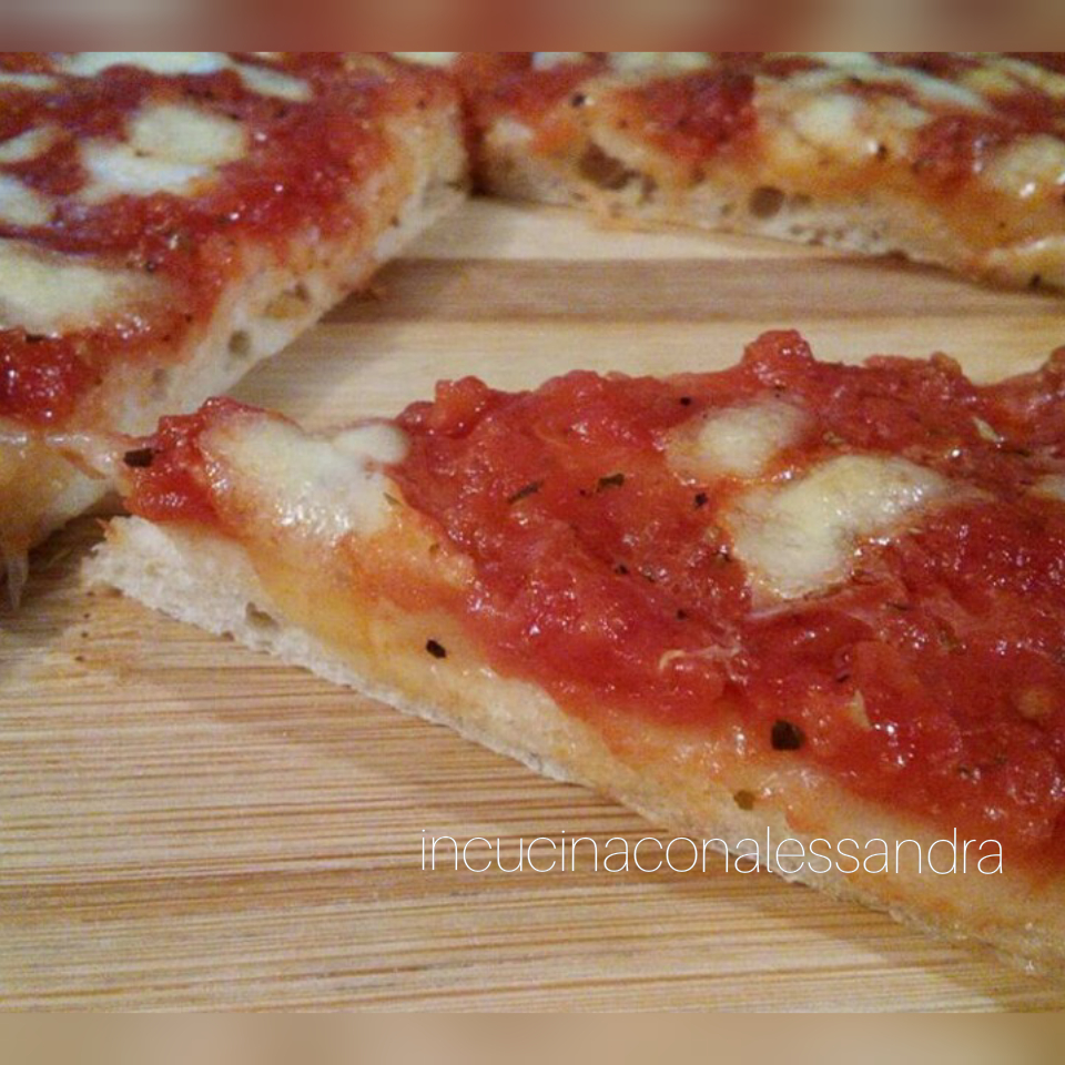 Une fois levée, graisser les plaques avec un peu d’huile et étaler la pâte avec les mains. Garnir avec beaucoup de tomate, mettre au four 5 minutes, couper la mozzarella en petits morceaux et après les 5 minutes, mettre sur la mozzarella et terminer la cuisson, environ 15 minutes au total.