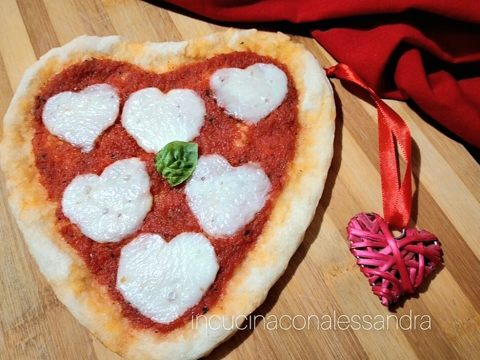 La Pizza margherita en forme de cœur est une variante de la margherita classique, une variante savoureuse et romantique idéale pour célébrer la Saint-Valentin avec la personne que vous aimez, parfaite aussi pour d’autres occasions importantes. Avec d’excellents ingrédients, vous donnerez forme à une pizza spéciale, belle à voir avec la mozzarella découpée en forme de cœur et délicieuse pour le palais. Bien sûr, vous pouvez vous amuser avec la garniture, par exemple, au lieu de la mozzarella, vous pouvez découper du salami en forme de cœur.