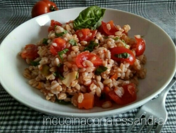 Tout d’abord, faites tremper l’épeautre dans l’eau pendant environ 10 minutes, ainsi les impuretés remonteront à la surface, puis rincez l’épeautre sous l’eau courante. Faites-le cuire dans une casserole avec beaucoup d’eau salée, pendant environ 20/22 minutes à partir de l’ébullition. Lorsqu’il est cuit, égouttez-le et passez-le sous l’eau courante pour arrêter la cuisson, laissez-le refroidir complètement et mettez-le dans un saladier. Pendant ce temps, préparez la garniture, lavez bien les tomates et coupez-les en morceaux, coupez l’oignon et les légumes sous huile en petits morceaux, mettez le tout avec l’épeautre, ajoutez le sel, la cuillère de câpres et l’huile et mélangez bien, ajoutez ensuite le basilic coupé ou légèrement haché et mélangez à nouveau. Laissez reposer au moins une demi-heure au réfrigérateur avant de la consommer.