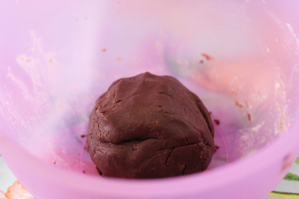 Pour préparer les biscuits à la crème de pan di stelle, commencez par peser 200 grammes de crème à tartiner pan di stelle et versez-la dans un grand bol. Ajoutez 1 œuf et mélangez-le bien avec 1 cuillère pour bien l’incorporer. Ajoutez ensuite 150 grammes de farine 00 tamisée et mélangez d’abord avec une cuillère normale ou en bois, puis terminez avec les mains. Formez une pâte souple et laissez-la reposer 10 minutes.
