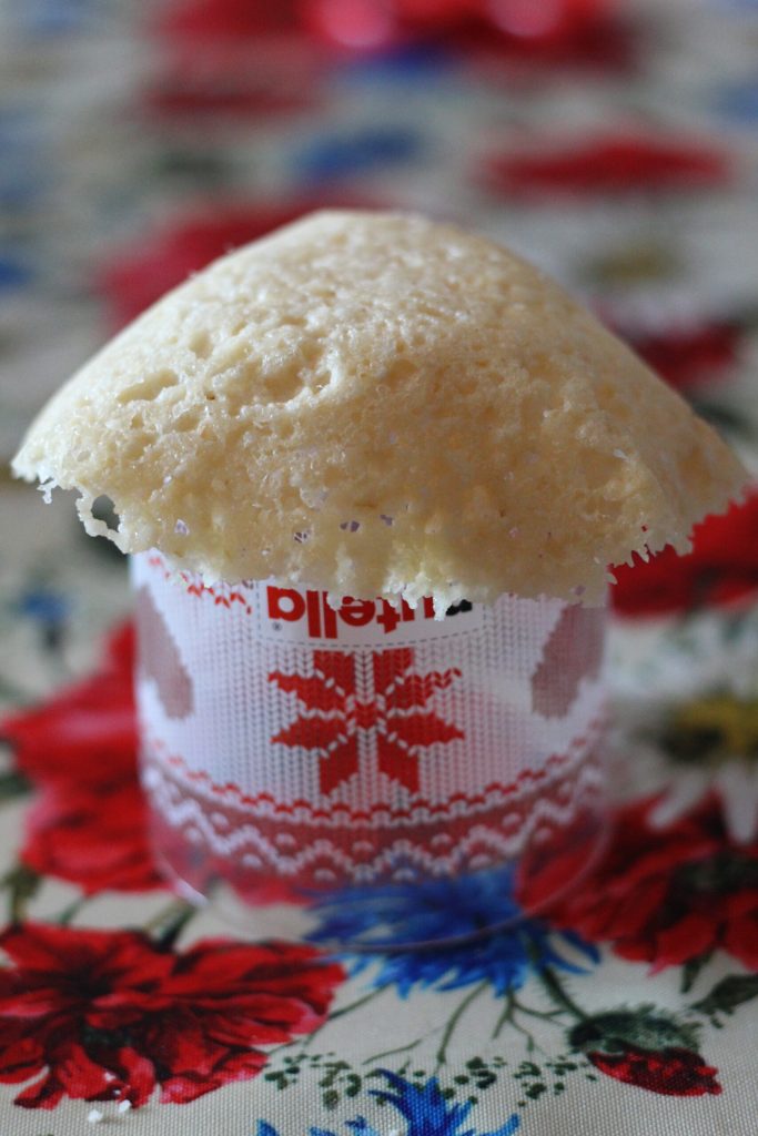 Prenez la feuille de papier sulfurisé et mettez-la dans le four à micro-ondes. J’ai un micro-ondes de 700 W et j’ai laissé cuire les tuiles pendant 50 secondes. Les bords des tuiles doivent être légèrement dorés mais pas trop. À ce stade, si vous le souhaitez, vous pouvez garder les tuiles plates, mais si vous voulez leur donner une forme de panier, prenez la tuile chaude du micro-ondes et posez-la sur le fond d’un verre en essayant de lui donner la forme que vous voulez.