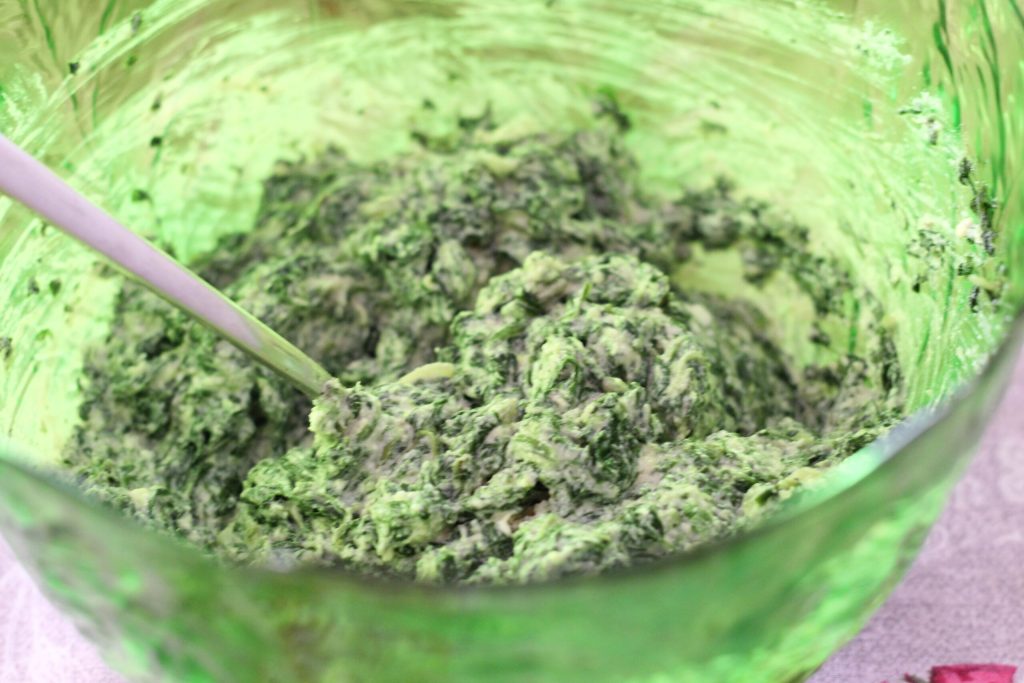 • Pour préparer la tarte salée d’Halloween, commencez par préparer la garniture. Commencez par cuire les épinards, dans ce cas j’ai utilisé des surgelés mais vous pouvez aussi utiliser des frais. Dans une poêle antiadhésive, ajoutez de l’huile d’olive extra vierge et de l’oignon doré, faites-le légèrement rissoler puis ajoutez les épinards surgelés et laissez-les cuire avec un peu d’eau et un couvercle pendant environ 7 minutes. Faites cuire les épinards à feu doux et ajoutez un peu d’eau uniquement si nécessaire, ils doivent être tendres. Égouttez maintenant les épinards dans un tamis pour évacuer toute l’eau de végétation. Sinon, la garniture sera trop liquide. Mettez maintenant les épinards dans un bol assez grand, ajoutez la ricotta, 1 œuf moyen, 2 cuillères à soupe de parmesan râpé et ajoutez du sel et du poivre noir selon votre goût.