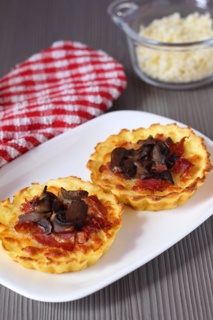 Vos tartelettes de pommes de terre, speck et champignons sont prêtes à être servies! Attendez avant de les enlever du moule, sinon vous risquez de les casser.