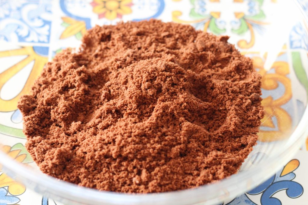 Mettez à reposer au réfrigérateur pendant au moins 30 minutes. Passé ce temps, sortez la préparation, prélevez-en une portion et façonnez des boules entre les mains (légèrement humidifiées). Passez ensuite les boules dans le cacao. Vous pouvez choisir du cacao amer ou sucré selon votre goût, moi j’ai choisi du cacao amer.