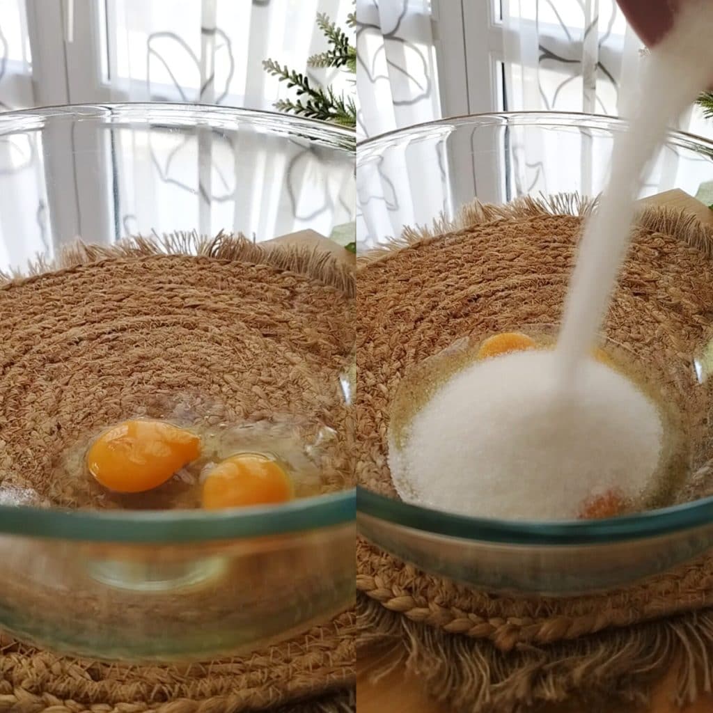 Ces biscuits à tremper sont simples à préparer. Pour commencer, prenez un bol, ajoutez les œufs avec le sucre.