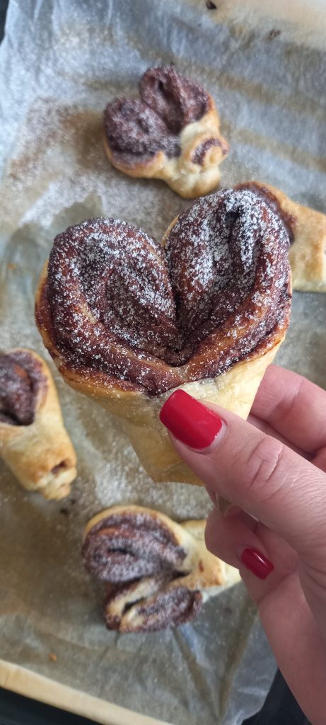 Aujourd’hui je vous laisse la recette de ces magnifiques cœurs de pâte feuilletée et Nutella, un petit dessert rapide pour célébrer la fête des amoureux.