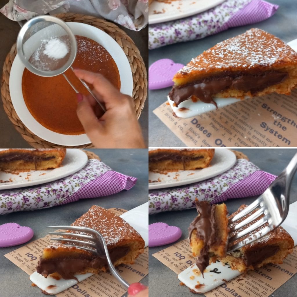 Démoulez et mettez la Nutella sur la couche supérieure du gâteau, sans déborder sur les bords. Recouvrez avec le reste de la pâte et faites cuire pendant encore 15 minutes. Une fois prêt, laissez tiédir.