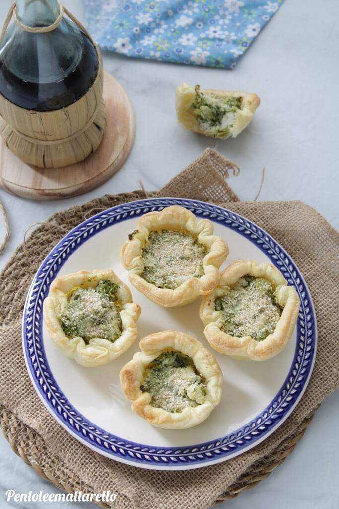 Les brocolis sont un type de légume qui nous permet de créer de nombreux plats savoureux. Nous pouvons les utiliser pour assaisonner un beau plat de pâtes ou pour accompagner les plats principaux de viande mais aussi de poisson. Cuisinés chauds ou froids, ils conservent leur goût inimitable. Cette fois, j’ai décidé de les associer à la ricotta pour réaliser des paniers de pâte feuilletée, obtenant ainsi une entrée mignonne et délicieusement savoureuse à apporter à table.