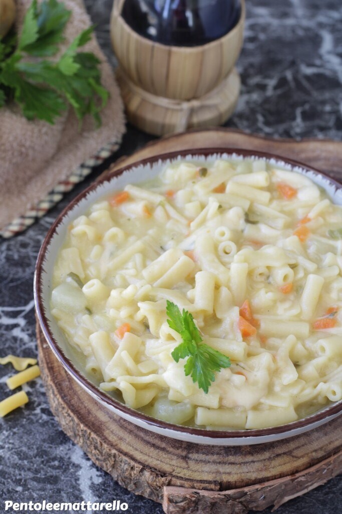 Ce plat est parfait pour les journées froides, mais il est tellement bon qu’il peut être préparé toute l’année. Sa crémeux naturel est obtenu en cuisant les pâtes directement dans le bouillon de pommes de terre, qui libère l’amidon et crée un premier plat irrésistible.