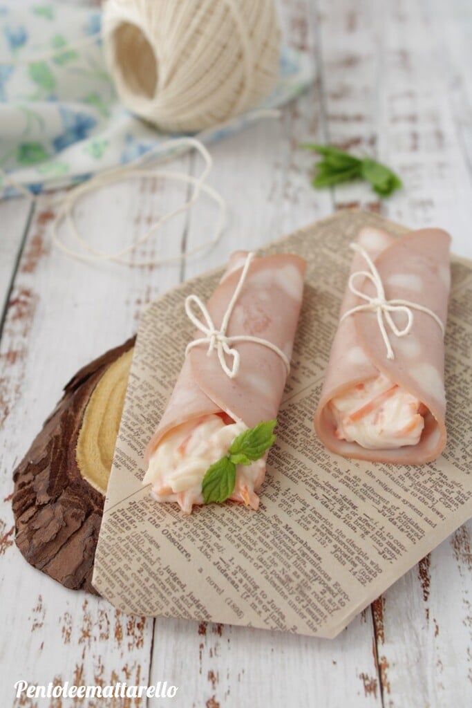 Les roulades de mortadelle et salade russe sont idéales aussi bien comme snacks que comme apéritif. Elles se préparent vraiment en très peu de temps et nécessitent juste un peu de créativité pour les rendre belles à apporter à table.