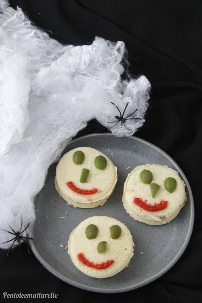 Les sourires salés sont de petits disques de pain de mie amusants et colorés que vous pouvez utiliser le jour d’Halloween pour faire plaisir à vos enfants. Ces sourires sont garnis de mayonnaise et de thon et décorés avec des olives vertes et du ketchup pour réaliser la bouche et les yeux. Nous parlons donc d’une recette savoureuse avec des symboles extravagants typiques de cette fête tant aimée par nos enfants .