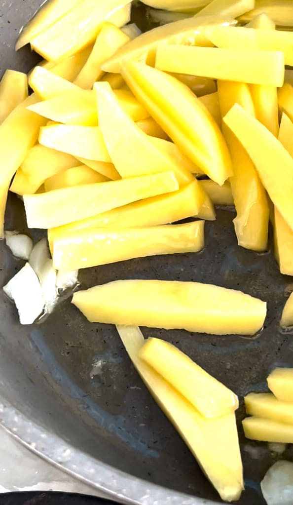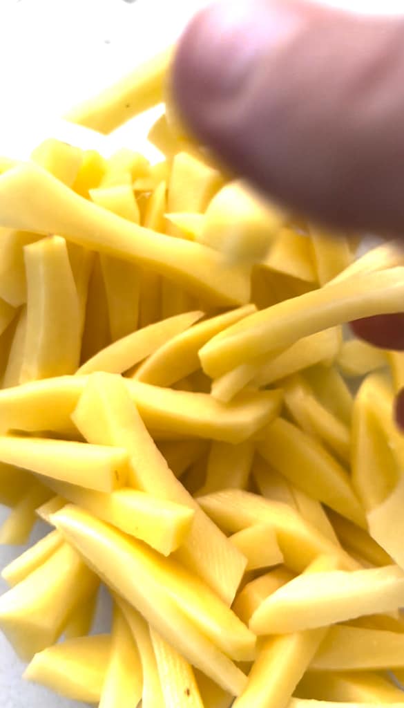 • Éplucher, laver et couper les pommes de terre en bâtonnets fins