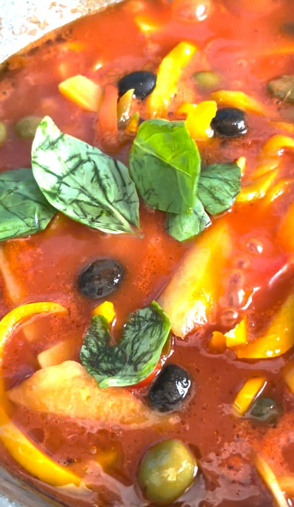 • 5 mn avant la fin de la cuisson ajouter les feuilles de basilic