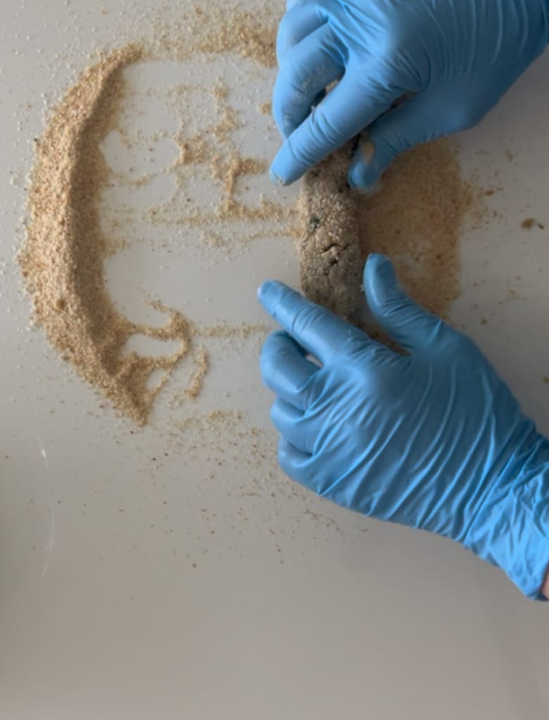 Les passer dans la chapelure et continuer jusqu’à épuisement du mélange