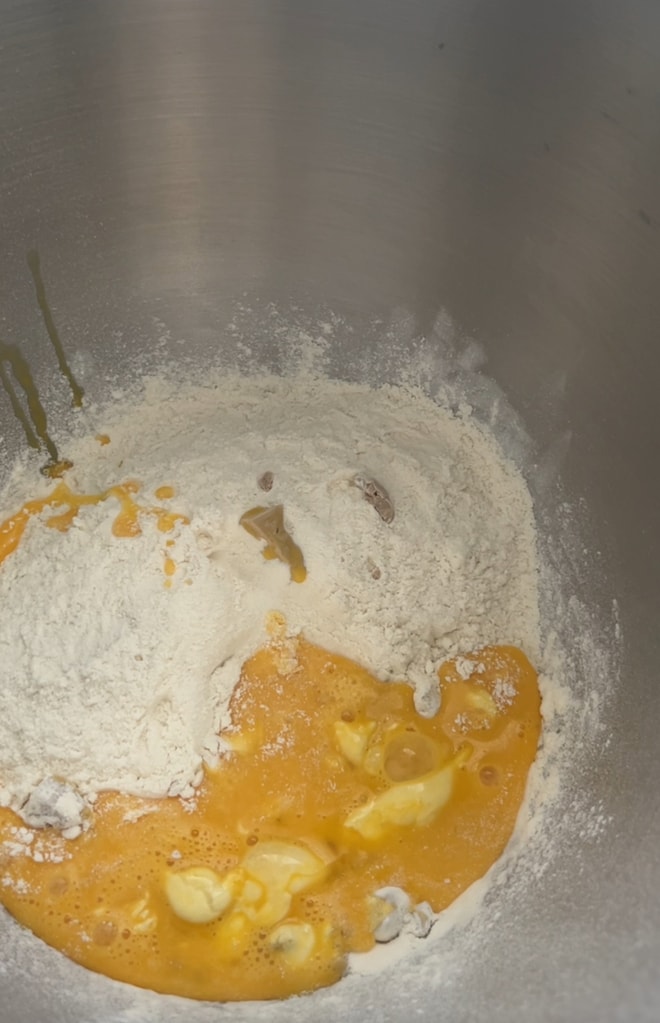 Dans le robot pâtissier, insérer la farine, la levure de bière