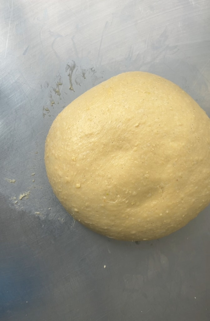 jusqu’à obtenir une boule lisse, homogène et élastique. Laisser reposer 1 heure au réfrigérateur et 1 heure à température ambiante.