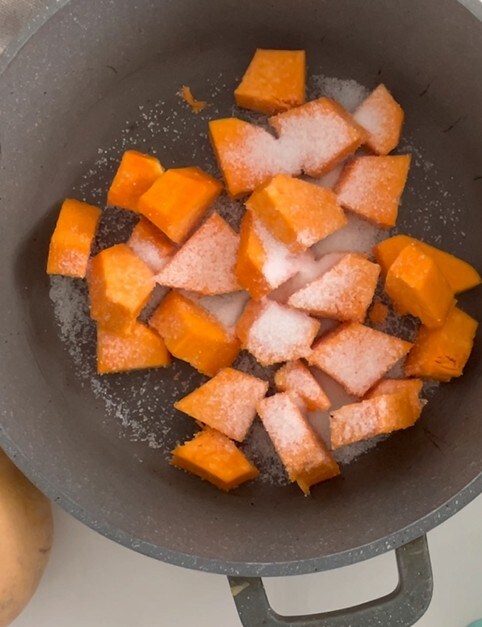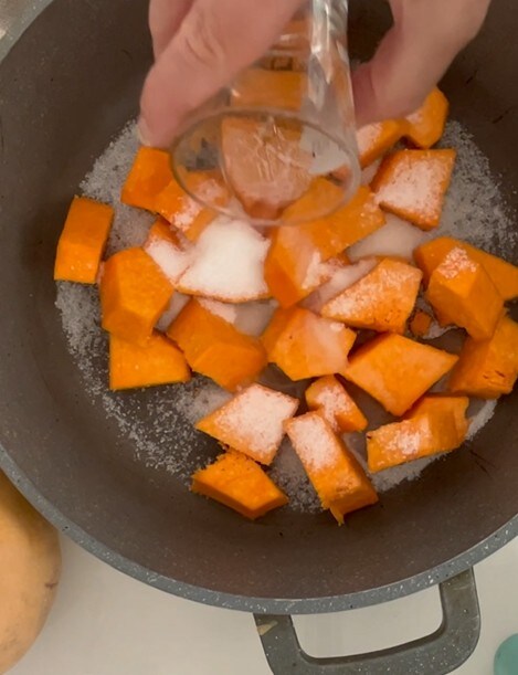 couvrir avec un couvercle et cuire jusqu’à ce que la citrouille s’attendrisse