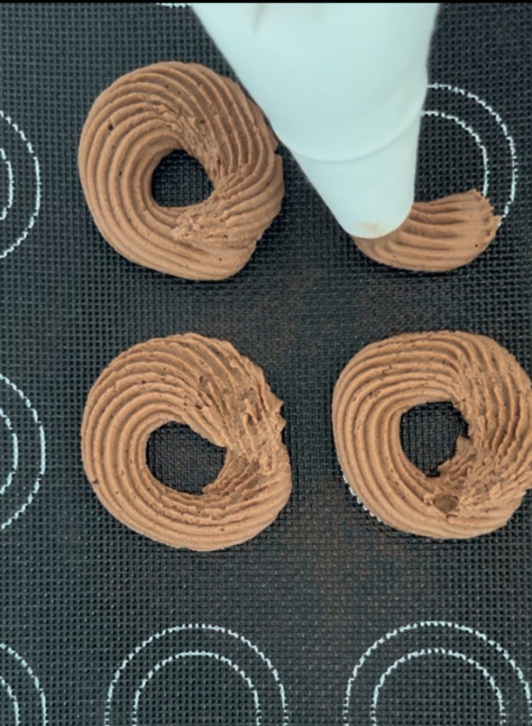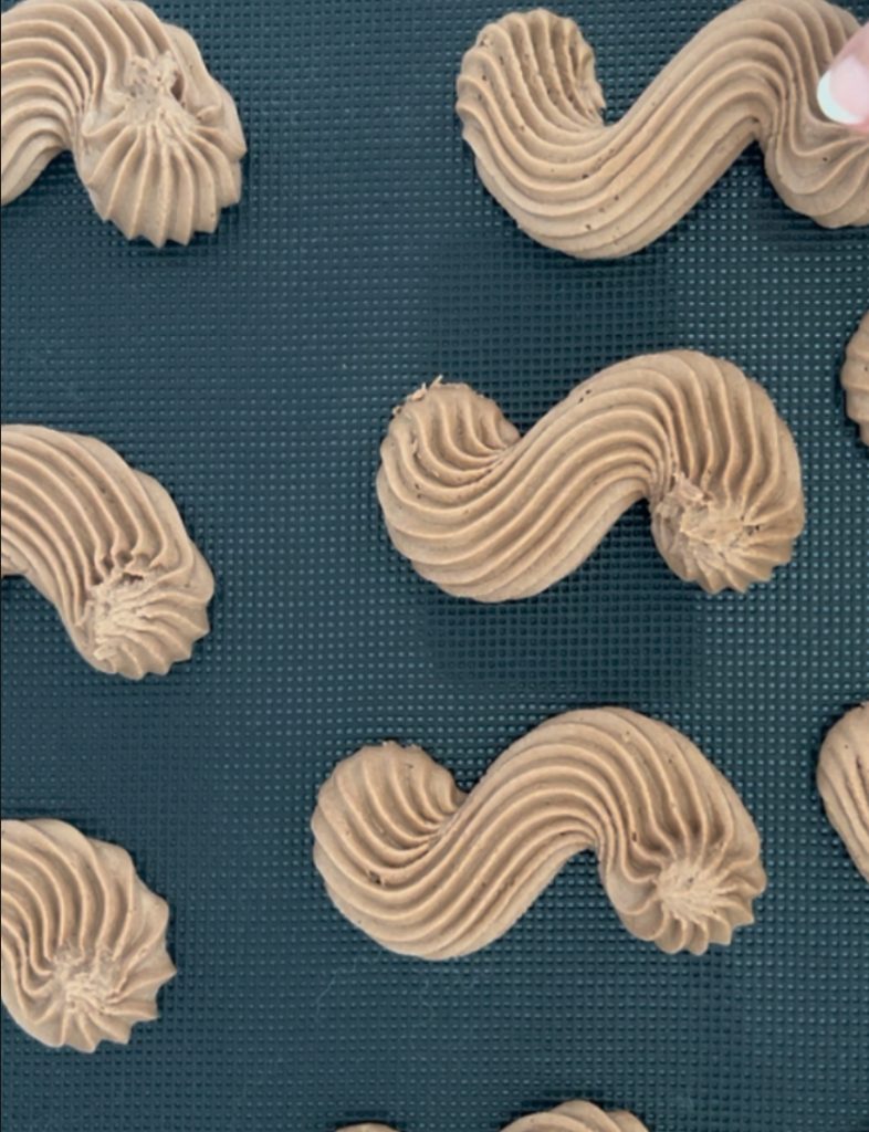 Donner forme à nos biscuits. Les placer sur un tapis en silicone pour pâtisserie ou si vous ne l’avez pas, utilisez du papier cuisson. J’ai donné une forme en S