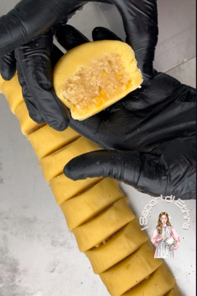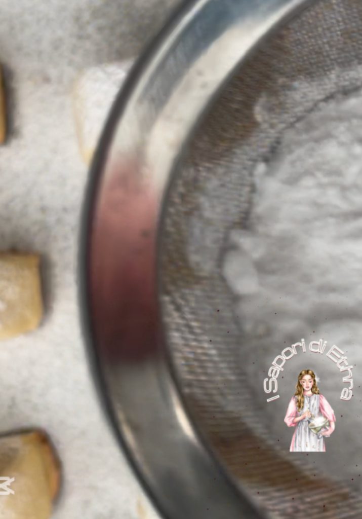 À ce stade, former un rectangle avec la pâte sablée mesurant 40×25 et d’une épaisseur d’environ 5 mm, et mouiller la surface avec de l’eau.