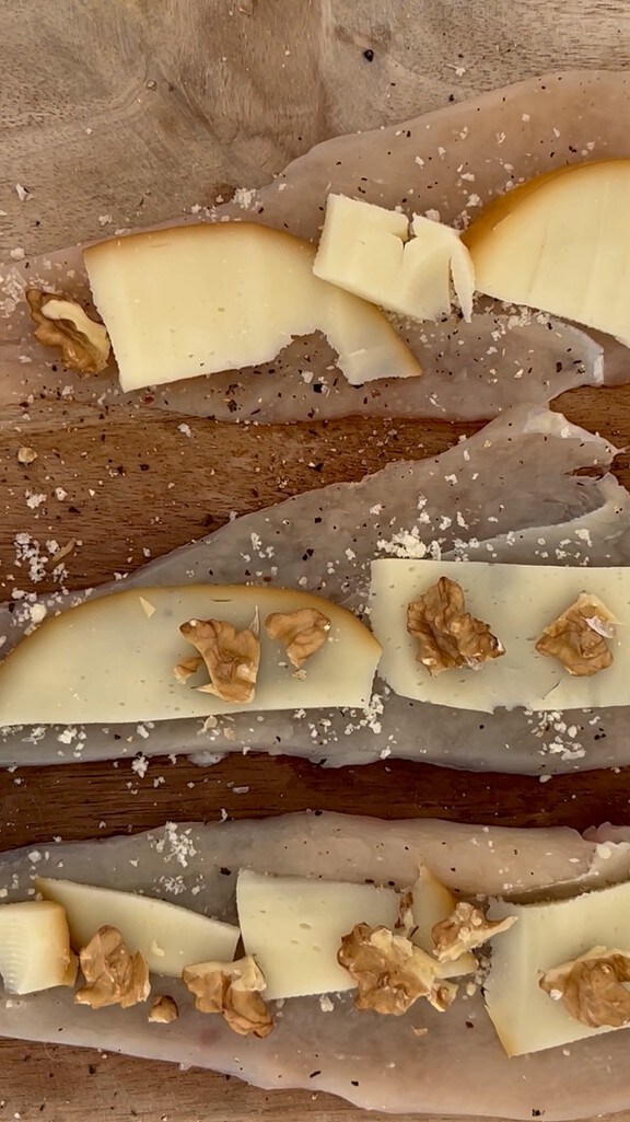 Les Bombettes de poulet aux noix miel et scamorza sont un second plat vraiment simple et savoureux à réaliser en toute occasion. C’est vraiment facile à réaliser et surtout délicieux. Le poulet est en effet une des viandes les plus aimées et utilisées en cuisine, surtout en régime diététique. Cela dépend naturellement de l’assaisonnement et de la quantité consommée. Dans ce cas, j’ai farci des fines tranches de poulet avec une fine tranche de scamorza fumée, un cerneau de noix et un filet de miel, je les ai roulées, panées et cuites au four. Donc, certainement plus légères que les classiques Bombettes au four des Pouilles. Dans ce cas, la viande est très fine et contient très peu d’assaisonnement.
