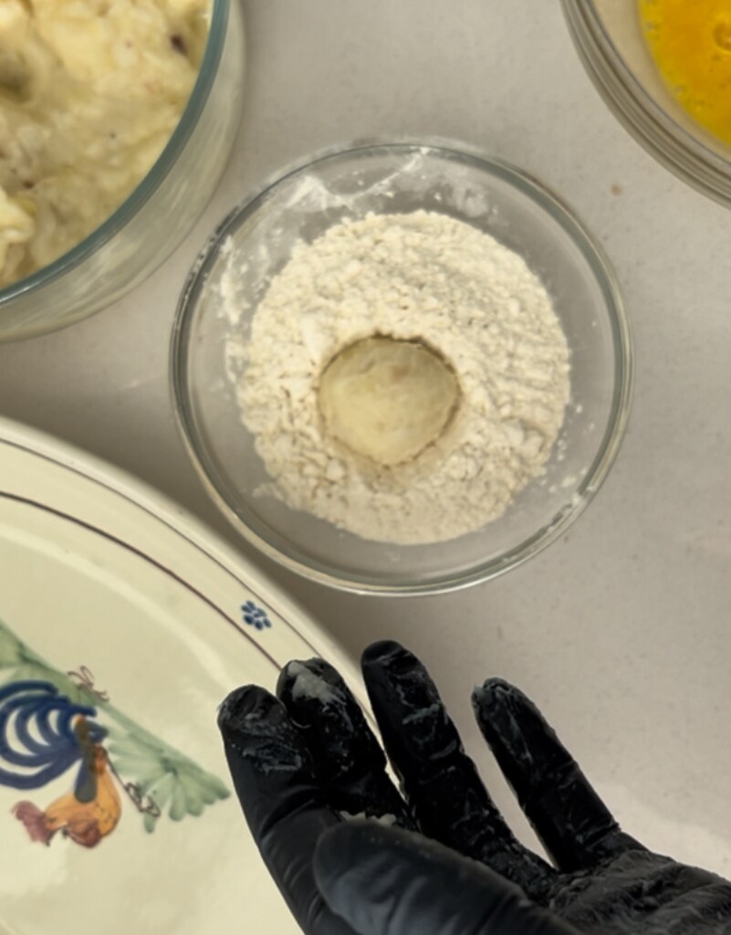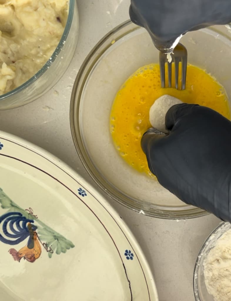 Aujourd’hui, un plat très gourmand: les bouchées de cabillaud à la crème frites. Le cabillaud à la crème est un plat typique vénitien, c’est-à-dire un cabillaud ou de la morue séchée rendu extrêmement crémeux avec de l’huile d’olive extra vierge après l’avoir mélangé au lait. Dans la recette originale, il n’y a pas de pomme de terre, mais avec la pomme de terre, je vous assure que le goût s’améliore… Choisissez vous-même si vous voulez l’ajouter ou non. Je vous assure que c’est un délice unique. Idéal à déguster en entrée avec un bon pain grillé pour faire des crostinis. J’ai réalisé de délicieuses bouchées frites de cabillaud à la crème que je vous conseille de préparer dès que possible. Dans ce cas, j’ai acheté le cabillaud déjà dessalé, mais si vous ne le trouvez pas et que vous avez de la morue séchée, je vous conseille de le laisser tremper entre 24 et 36 heures pour éliminer totalement le sel, et de changer l’eau toutes les 8 heures afin d’éviter que le sel dissous ne pénètre à nouveau dans la chair du poisson.