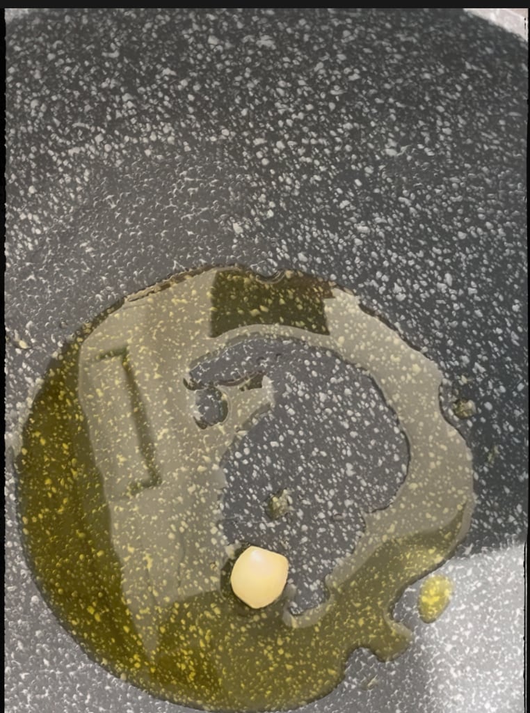 Dans une poêle, faire revenir l’ail avec l’huile d’olive