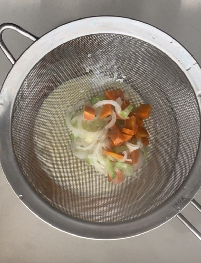 Filtrer et éliminer la carotte, le céleri et l’oignon