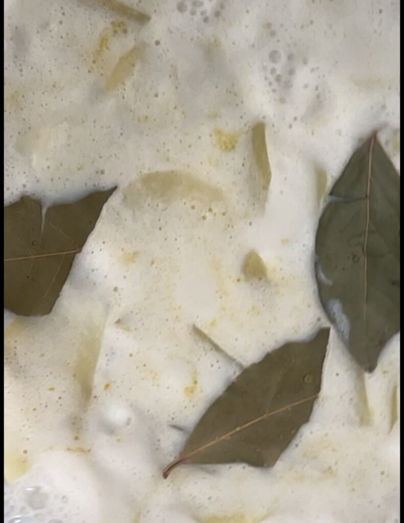 Le cabillaud, les feuilles de laurier et une pincée de poivre
