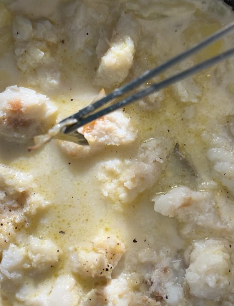 Nous obtiendrons ainsi notre cabillaud à la crème. Laisser refroidir.